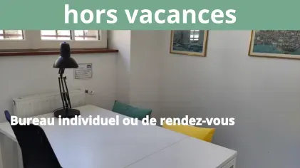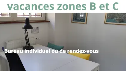Bureau fermé partagé de 4 postes. Tarif par poste de travail. Le tarif haute saison s'applique pendant les vacances scolaires des zones B et C ainsi qu'en juillet et août.